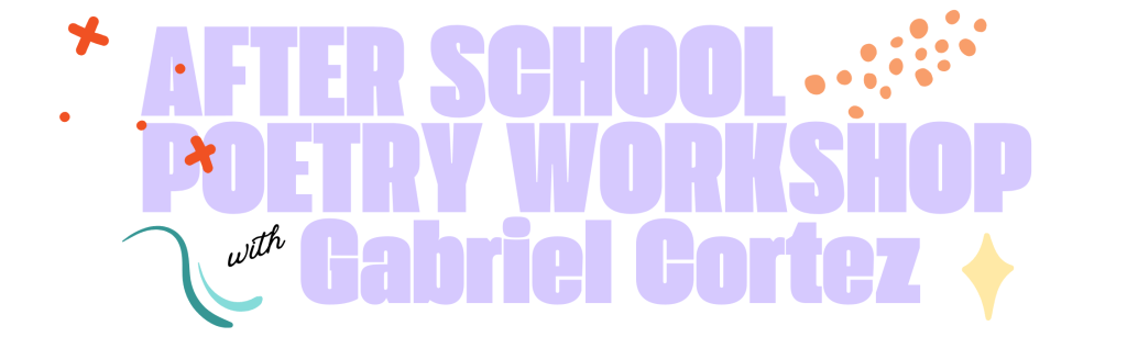 What is it? “After School” is a new, 6 week long, online, generative writing workshop series led by poet and educator, Gabriel Cortez, beginning March 11th, 2025. Join a fun and supportive community of poets invested in growing as writers. Each participant will cultivate a deeper understanding of craft and the possibilities of their voice, developed through direct, hands-on learning, and guided study of some of the most exciting poets today. Sessions are highly interactive and include writing prompts, discussions of guiding texts, and sharing new original work created each class. After the final workshop, we will have a culminating online reading that is open to the public.